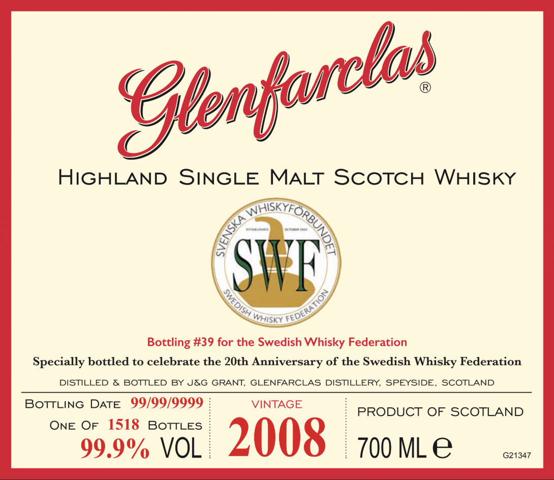 Tillsammans med Solera Beverage Group har vi nöjet att erbjuda en Glenfarclas Vintage 2008. Whiskyn är agrad på sherryfat och buteljeras vid en ålder av 15 år. I doften hittar man bl a kakao och sherrytoner och i smaken russin och lakrits – en mycket bra sammanhållen whisky.